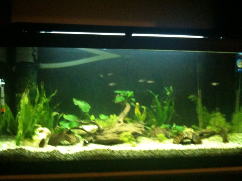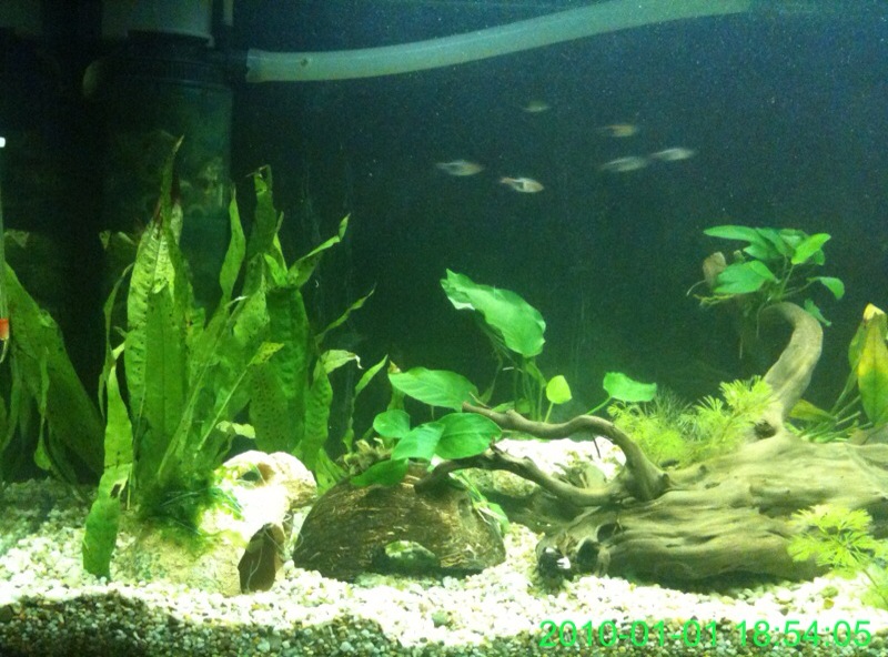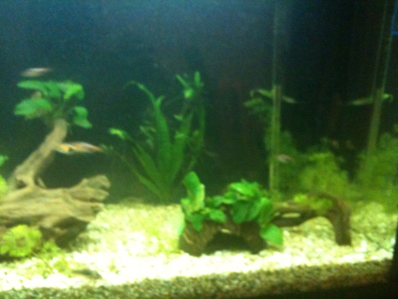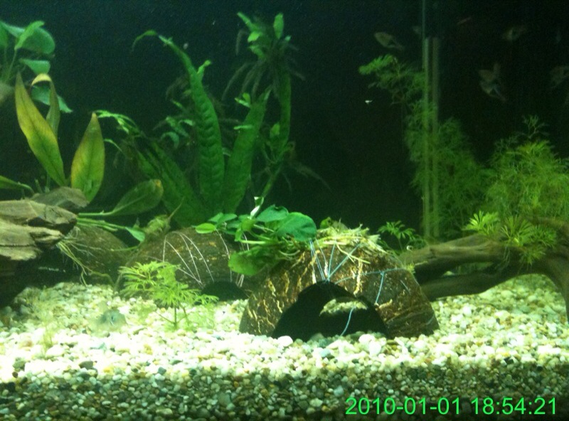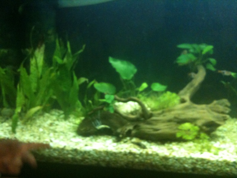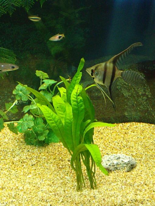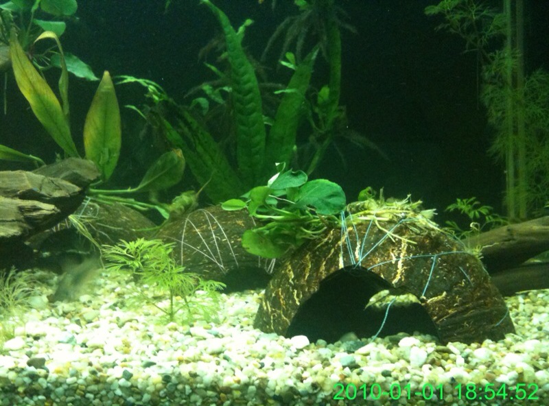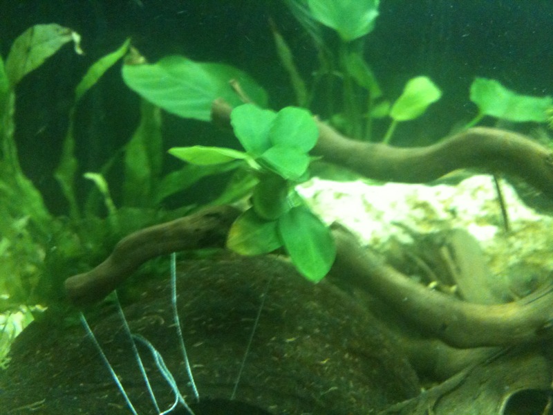 ) το εβγαλα απο το γλαστρακι και το περιεργαστικα λιγο...ηταν σαν να ειναι κλαδεματα...ειχε μικρες ριζες κατι το οποιο με απετρεψε απο το να το δεσω σε καποια καρυδα αφου η κλωστη δν θα τις επιανε ...ετσι το εβαλα κατευθειαν στο χαλικακι μεχρι να μεγαλωσει λιγο...περιττο να πω .πως ολα τα ψαρια εδω και 1 ωρα εχουν μαζευτει και το περιεργαζονται...ειναι καλο που τα εβαλα ''κολλημενα'' τα φυλλα ή πρεπει να ειναι αλλιως ... καποιος??/ |