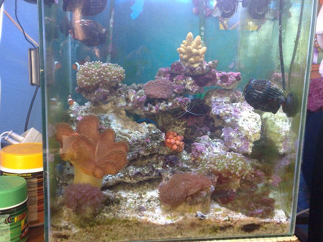 καλησπερα κ απο εμενα στην παρεα! ηρθε η ωρα να σας παρουσιασω κ εγω το μικρο μου συστημα! λοιπον το ενυδρειο ειναι 80λ+20λ το sump εχω 14κιλα ζβ. κ 10 κιλα αραγωνιτη απο κυκλοφορια εχω 3 korallia nano, ενα εξωτερικο φιλτρο eheim 2211 κ την επιστροφη απο το sump με μια αντλια eheim 1500λ/ω. απο φως εχω 3 λευκες κ 1 ακτινικη. ολες ειναι της juwel 24w. στο sump εχω 1 λευκη κ 1 ακτινικη της ιδιας εταιριας.skimmer εχω το berlin airlift 60 τις red sea.