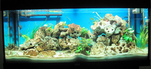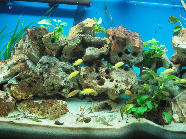 Γενίκα είναι όμορφο το ενυδρείο σου. Τις φεγγαρόπετρες αν και κατά την γνώμη μου γενικά δεν δείχνουν φυσικές, κατάφερες να τις κάνεις ένα εννιαιο σύνολο και να δέσουν η μία με την άλλη. Και αφού κατάφερες να τις κάνεις να κουμπώσουν τόσο καλά μεταξύ τους, δεν θα πρότεινα καμιά αλλαγή στο στήσιμο. Καταφερες πραγματικά να δημιουργήσεις αρκετές κρυψώνες. Επίσης δείχνει πάρα πολύ φωτεινό. Ίσως φταίει το φόντο. Σα να λάμπει ολόκληρο το ενυδρείο. Για τα φυτά, γενικά μου άρεσε το στήσιμο τους, αν και δεν τα πάω καλά με τις ανουμπιες. Πάντα γέμιζαν αλγες. Καλή συνέχεια και προσεχε τον αριθμό των ψαριών σου. Μην βάλεις πολλά...