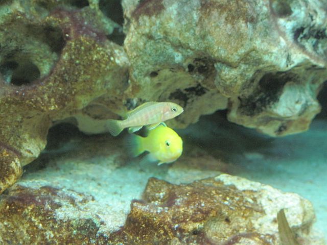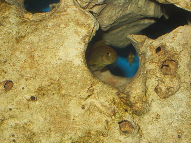![]() Διαφωνώ λιγάκι με το στήσημο της πέτρας. Με παραπέμπει περισσότερο σε ένα τροπικό ύφαλο, παρά σε aquascape μιας λίμνης, ειδικότερα αφού υπάρχουν και οι φεγγαρόπετρες. Μπερδεύει ακόμα περισσότερο η σχεδόν συμμετρική τοποθέτηση των φυτών πάνω στις πέτρες. Είχα και εγώ στο παρελθόν κάπως έτσι στημένο το ενυδρείο, αλλά μόλις τώρα έχω καταλάβει πως λαμβάνει χώρα ο διαχωρισμός δύο χαρεμιών (αρσενικών) ιδίου είδους, όταν οι πέτρες είναι στοιβαγμένες σε δύο ξεχωριστές θέσεις, αφήνοντας κενό χώρο στο ενδιάμεσο τους. Θα προτιμούσα επίσης αν τοποθετούνταν τα φυτά πιο φυσικά, πιο κοντά στις άκριες (δεξιά και αριστερά) του ενυδρείου, αφίνοντας και πάλι εντελώς γυμνές τις πέτρες στο κέντρο. Εύχομαι να με συγχωρήσετε. Συμφωνώ και εγώ ότι το γαλάζιο φόντο ενισχύει την εικόνα του θαλασσινού. Στο ενυδρείο μου τυγχάνει να έχω ακριβώς την ίδια σύνθεση εκτός τα Melanochromis "maingano". Στη θέση τους έχω Demassoni. Δεν θα συναντήσεις κανένα απολύτως πρόβλημα υβριδισμού.