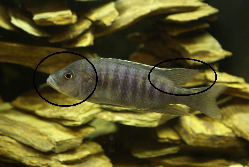 Στις παρακάτω φωτό έχω κυκλώσει τις 2 διαφορές που έχω παρατηρήσει. Η διαφορά στο κεφάλι το ένα είναι πιό σκούρο και στην ουρά. Ισχύει κάτι απο τα δύο για ζευγάρι?Σε πηγές δεν βρήκα κάτι όσον αφορά το φύλο.Κατα τ'άλλα μπλέ σημάδια έχουν και τα δύο στο σώμα τους με το 2ο να είναι και πιό σκούρο. Και το ψάρι της πρώτης φωτό έχει ξεκινήσει και κυνηγάει το άλλο συνέχεια.