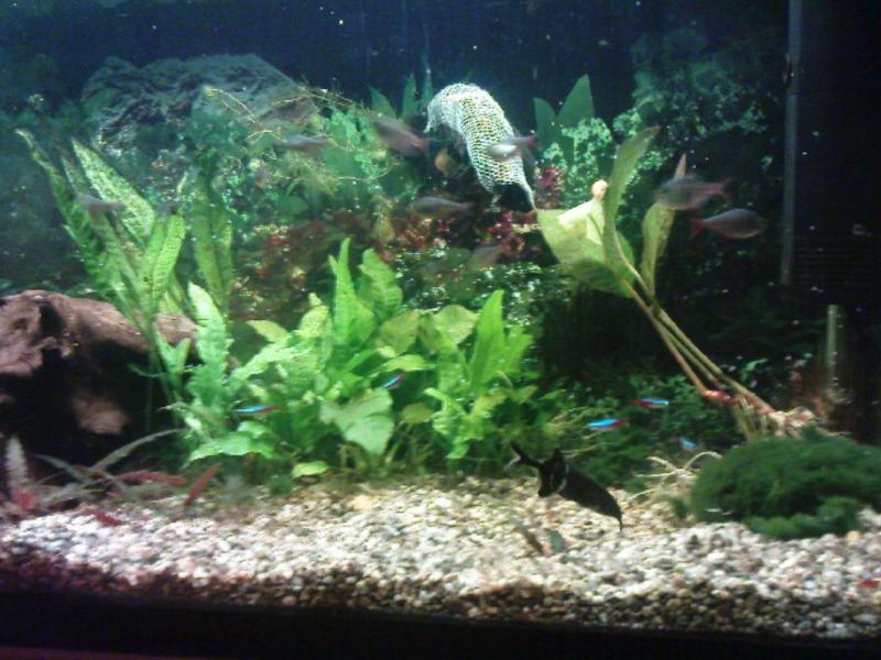 Διαστάσεις:100-40-60 Όγκος: 200λτ περιπου Κατηγορία: φυτεμένο χαμηλων απαιτησεων Φυτά: κερατοφυλλο ,ανουμπιες,εχινοδορος,φακη,μπαλα αλγης,java moss,κρυπτοκορινες Ψάρια / ¶λλα είδη: 10 νεον,17 κολομβιανα τετρα,1 κουχλι,1 ελεφαντοψαρο,1 borneo sucker,1 λαμπεο φρενατουμ,4 γαριδες αμανο,2 γαριδες rock mountain, πολλες red cherry, πολλα μηλοσαλιγκαρα. Διακοσμητικά υλικά: χαλικι-ξυλα Φόντο: αφισα με φυτα Φωτισμός: 1 Τ5 Διάρκεια φωτισμού:8 ωρες Φιλτράρισμα: εξωτερικό φίλτρο dolphin C-500 με siporax και σφουγκαρι και εσωτερικο SERA fil120 με spirolax mini Θερμοστάτης: 1x200βατ Λίπανση: flourish comprehensive Παροχή CO2: περιστασιακα DIY Παράμετροι: pH: 7,2 Γενική σκληρότητα (GH): 8 Ανθρακική σκληρότητα (ΚΗ): 6 Αμμωνία (ΝΗ3): 0 Νιτρώδη (ΝΟ2):0 Νιτρικά (ΝΟ3):15 Αλλαγές νερού: 30% την εβδομαδα Θερμοκρασία: 24 ¶λλες πληροφορίες: δυστυχως οι φοτο ειναι τραβηγμενες απο κινητο. |