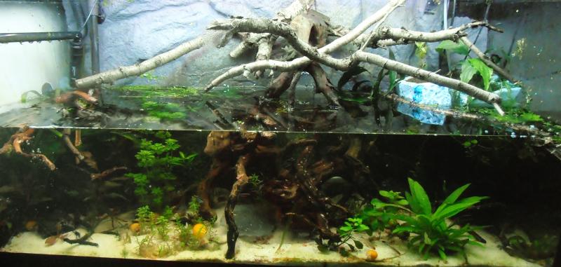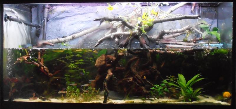 Καταρχήν να πώ οτι διαθέτω ενα ενυδρείο 100Χ40Χ50 το οποίο έχω ήδη αρχίσει να μετατρέπω σε palludarium. Το νερό είναι στους 25 πόντους και απο πάνω βγαίνουν κλαδιά.