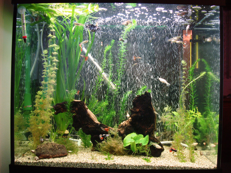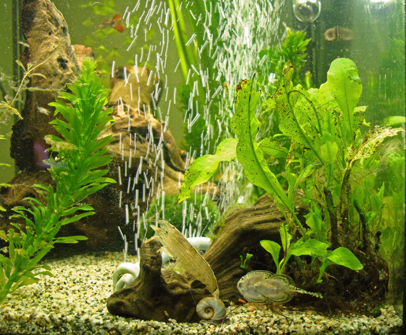 Εχω μια μικρη ενσταση με την αεροκουρτινα, που οσο ωραιο εφε και αν κανει δεν βοηθαει τα φυτα, γιατι διωχνει και το λιγο co2 που υπαρχει στο νερο. Γενικα φυτεμενο και αεραντλια δεν τα πανε καλα