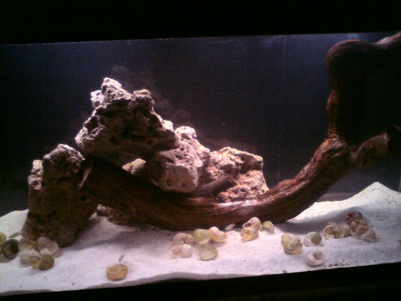 γυρισαμε και απο τις διακοπες, τα μικρα εχουν παρει τα πανω τους αφαιρεσα και ολα τα κοχυλια που ειχαν διαφορα μεσα και μυριζανε ,πολλες αλλαγες νερου αμμωνια στο 0,3 ελπιζω να μηδενισει καποια στιγμη αυριο μεθαυριο ,τα βλεπω να σκαβουν καλο σημαδι αυτο . ξυλα ,πετρα και κοχυλια συνδιαζονται η ειναι βλακεια ; (γιατι το εκανα και οπτικα ειναι ωραιο