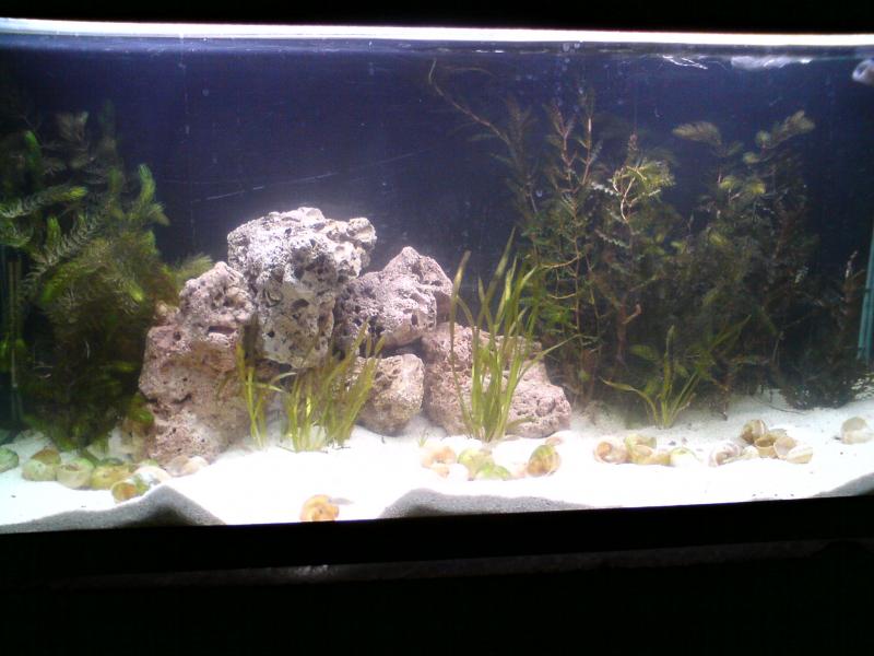 εστρωσε το φιλτρο εντελως και τα μικρα ειναι η μερα με την νυχτα απο τοτε που τα πηρα ,πολυ πιο ζωηρα και τρωνε και βλεπω συμπεριφορα ζευγαρωματος .ετσι το εστησα τωρα με λιγο βραχο και λιγα φυτακια που μαζεψα.