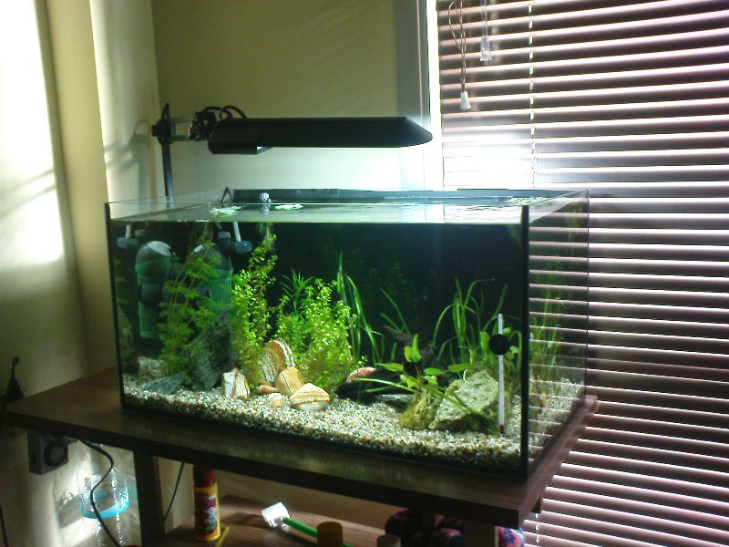 Μάζεψα λοιπόν κάποιες χαρακτηριστικές φωτογραφίες από την 10μηνη αυτή πορεία, η τελευταία τραβήχτηκε στις 12/08, για να θυμηθώ μαζί με εσάς αυτά τα ενυδρεία και τους κατοίκους αυτών.. Οι φωτογραφίες ανέβηκαν με κάποια σχετική χρονολογική σειρά.. Αυτή την στιγμή υπάρχει μόνο το τελευταίο αρκετά αλλαγμένο, μόνο με μοςς και περισότερες πετρούλες.. Απο Σεπτέμβριο πιστεύω πως θα είναι έτοιμο το καινούργιο.. Για οποιδήποτε απορία σε σχέση με τα ενυδρεία θα χαρώ να σας διαφωτίσω!! |
