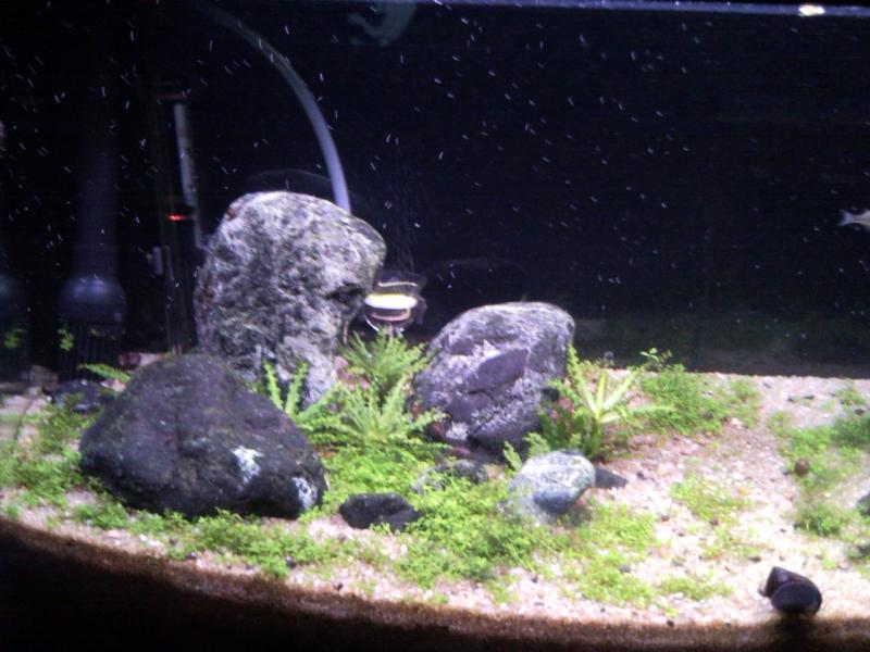 ![]() για 2 μηνες ολα πηγαιναν καλα στο ενυδρειο μεχρι που ξαφνικα....εμφανιστηκαν, ναι, και απο τοτε ειμαι βημα πισω, και αλλο βημα πισω και ξανα πισω και τωρα ειμαι στο σημειο που δεν εχει αλλο πισω ![]() ![]() καπου εδω πιανει δουλεια το GAB. για να αφησουμε ομως και τα λογια να παμε και παρακατω Διαστάσεις:60x30x30 Όγκος: 54 l Κατηγορία: iwagumi Φυτά: pogostemon helferi, cuba Ψάρια:8 marosatherina ladigesi, red cherry, 2 nerite snails kai πολλα ramshorn snails Διακοσμητικά υλικά: πετρες μη ασβεστολιθηκες Φόντο: Μαύρο Χαρτόνι Φωτισμός: 2 Χ 24W Highlite T5 (grolux) Διάρκεια φωτισμού: 8 Ώρες Φιλτράρισμα: το κινεζακι sun sun με φιλτρο στην εισαγωγη ωστε να εχει μειωθει αρκετα η ροη(ωστε να μην γινεται πλυντηριο) Θερμοστάτης: 1 X 50 w Λίπανση: καθημερινη λιπανση με ολη την σειρα της Seachem Παροχή CO2: diy 2λιτρη μπουκαλα Παράμετροι: pH: 7,0 Γενική σκληρότητα (GH): 10 Αμμωνία (ΝΗ3): 0 Νιτρώδη (ΝΟ2): 0 Νιτρικά (ΝΟ3): 10 Αλλαγές νερού: 50% Κάθε 7 μέρες Θερμοκρασία: 25 βαθμοί οκ, αφου τα ειπαμε και αυτα, παμε τωρα στις φωτο. θα ξεκινησω αοπ την αρχη και θα σηνεχιζω.. οι τελευταιες θα ειναι με τις αλγουλες ![]() ακουω....