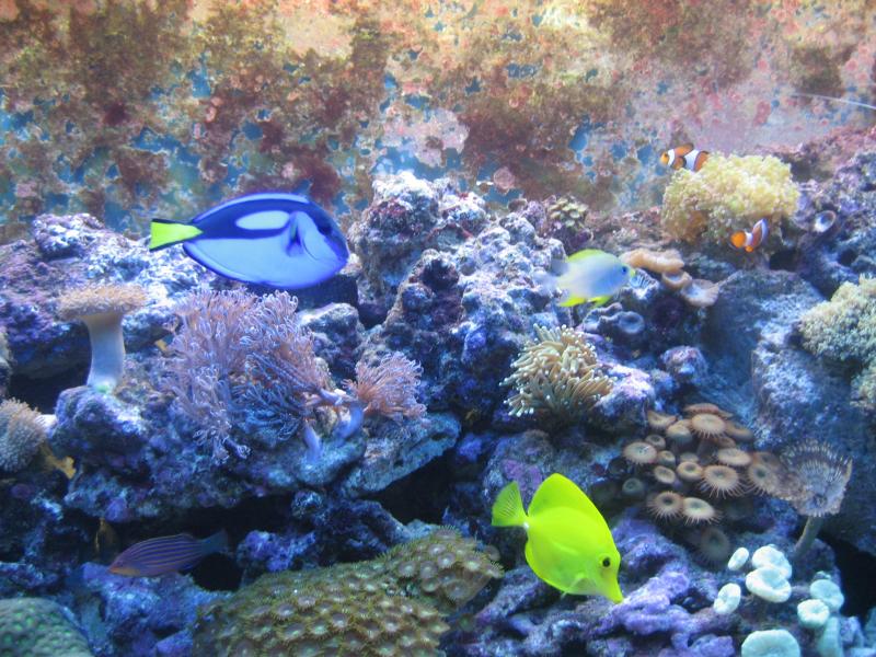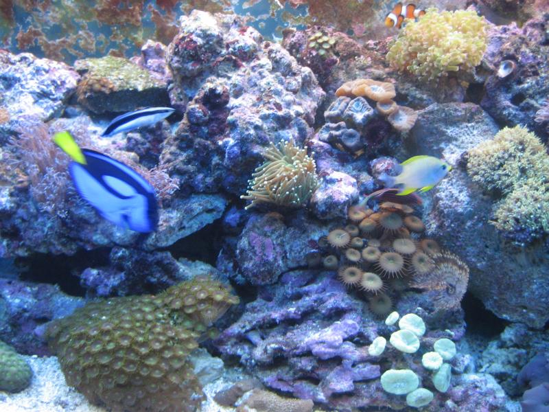 μετα απο σχεδον ενα χρονο ζωης πιστευω οτι πρεπει να ακουσω ολα τα σχολια σας για να γινω εγω κ ο υφαλος μου καλυτεροι.το ενυδρειο ειναι το Juwel Rio 300,σκιμμερ Deltec MCE600,δυο κυκλοφορητες Hydor Koralia evolution 5200litra k2800,φωτισμος 4χ54 τ5 δυο λευκες marine k δυο ακτινικες.η φωτοπεριοδος ειναι δεκα ωρες.το φιλτρο του ενυδρειου εχει μεσα ανθρακα,αντιφωσφορο,θερμαντηρα300watt κ τον μαμισιο κυκλοφοριτη 1000λιτρα/ωρα για αναδευση.υπαρχουν περιπου 60-70κιλα βραχου κ 60κιλα αραγωνιτης.απο 'ζωντανα'εχουμε'ασπονδυλα 2Lysmata amboinensis,2Lysmata wurdemann(οι οποιες ειναι μονιμα κρυμμενες),5Nassarius distortus,5Turbosnail sp.)τα ψαρακια μου ειναι τα εξης,2Amphiprion ocellaris,2Amphiprion clarkii,2Pterapogon kaudernι,2Sphaeramia nematoptera,1Zebrasoma flavescens,1Paracanthurus hepatus,1Ecsenius midas,1Gobiodon atrangulatus,1Amblyglyphidodon aureus,1Labroides dimidiatus,1Pseudocheilinus hexataenia, 1Nemateleotris decora .κορραλια-soft corals-Actinodiscus sp,Rhodactis inchoata,Rhodactis sp,Ricordea,μανιταρια.Sinularia sp,Sarcophyton sp,Protopalythoa sp,Zoanthus sp,xenia sp,Briareum sp.LPS-Caulastrea curvata,Caulastrea furcata,Favites spp,Euphyllia glabrescens,Euphyllia paradivisa,κ3 σπειρογραφοι.η φροντιδα του ενυδρειου ειναι η εξης-καθε 15 μερες αλλαγη 30 λιτρα,καθε βδομαδα προσθηκη 'ζουμιων' της Seachem ασβεστιο,ιοδινη,στροντιο,μαγνησιο,ιχνοστιχια.αυτη ηταν η παρουσιαση του υφαλου μου,ελπιζω να μην εγινα κουραστικος.ενα πολυ μεγαλο ευχαριστω στο GAB,γιατι χωρις αυτο δεν θα τα ειχα καταφερει τοσο καλα,κ ενα δευτερο ευχαριστω στους συντοπιτες μου andreas213 k chrisx.ΧΡΟΝΙΑ ΠΟΛΛΑ ΚΑΛΗ ΧΡΟΝΙΑ ΣΕ ΟΛΟΥΣ,ΜΕ ΥΓΕΙΑ ΤΙΠΟΤΑ ΑΛΛΟ!!!!!!!!!!!!!!!!!!!!!!