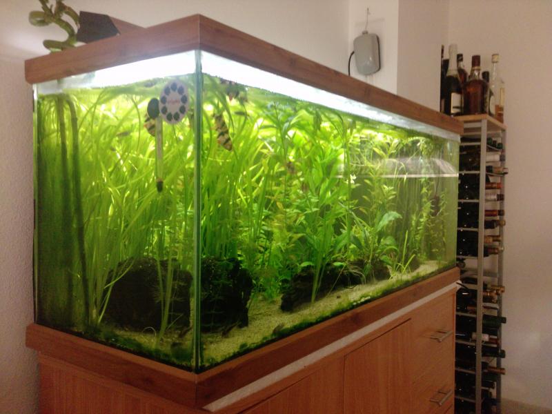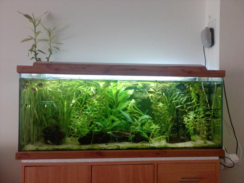 Πληροφορίες Διαστάσεις: 100 μηκος χ 35 πλατος χ 45 υψος Όγκος: 140 λιτρα καθαρα Κατηγορια κοινωνικο Φυτά: Ceratophyllum demersum, Αnubias, Hygrophila polysperma, Bacopa monnieri, Vallisneria 2 δρακενες και καποια αλλα που δεν θυμαμαι ονομασιες Ψάρια / ¶λλα είδη: 11 τιγρακια, 7 ζεβρακια 3 κορυ αενεους και 6 στερμπα'ι' Διακοσμητικά υλικά: ένα πυθαρι ,ένα ναυαγιο (χαλίκι, ξύλα κ.λ.π.) ποταμισια αμμος (χοντρη) ένα ξυλο Φόντο: μαυρο χαρτονι Φωτισμός: 2 τ5 21 βατ, 90εκ Διάρκεια φωτισμού: 5 ωρες το καλοκαιρι 8 το χειμωνα Φιλτράρισμα: εξωτερικο 400λιτρα/ ωρα Θερμοστάτης: 200 βατ Λίπανση: plantaMin, καλιο και ταμπλετες crypto της τετρα Παροχή CO2: d.i.y 4 λιτρο μπετονακι Παράμετροι: pH: < 7,5 Γενική σκληρότητα (GH): 8-9 με απιονισμενο νερο Ανθρακική σκληρότητα (ΚΗ): 7-8 Αμμωνία (ΝΗ3): 0 Νιτρώδη (ΝΟ2): 0 Νιτρικά (ΝΟ3): 5 -10 Αλλαγές νερού: 30 τις εκατο καθε 10 μερες Θερμοκρασία: 27 το καλοκαιρι 25-26 το χειμωνα 1η παρουσιαση http://www.aquatek.gr/vb/showthread.php?t=33824 2η παρουσιαση http://www.aquatek.gr/vb/showthread.php?t=43820 Υ.Γ 1 τα φυτα ειναι μια ευγενικη δωρεα του giannisqq Υ.Γ 2 οι φωτο ειναι απο κινητο