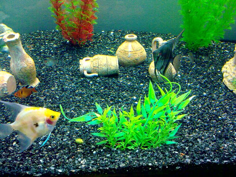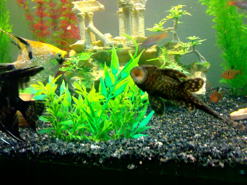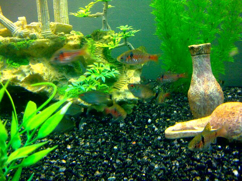 Όγκος:300l Κατηγορία:Κοινωνικό Φυτά: Ψάρια / ¶λλα είδη: Σκαλάρια,Γατόψαρα clown,rainbow shark,pleco,barbus odessa... Διακοσμητικά υλικά: (χαλίκι, ξύλα κ.λ.π.) Φόντο: Φωτισμός:juwel day/juwel natural Διάρκεια φωτισμού:7-8 ωρες Φιλτράρισμα:Εσωτερικό Θερμοστάτης:300 watt Λίπανση: Παροχή CO2: Αεροαντλία Παράμετροι: pH:7,2 Γενική σκληρότητα (GH): 7d Ανθρακική σκληρότητα (ΚΗ):6d Αμμωνία (ΝΗ3):0 Νιτρώδη (ΝΟ2):0 Νιτρικά (ΝΟ3):0 Αλλαγές νερού:15 μέρες Θερμοκρασία: 24 C - 26 C Φωτογραφία: Αυτα ειναι τα ψαρακια μου..... Τελευταία επεξεργασία από το χρήστη Πάνος : 26-11-10 στις 05:54 |