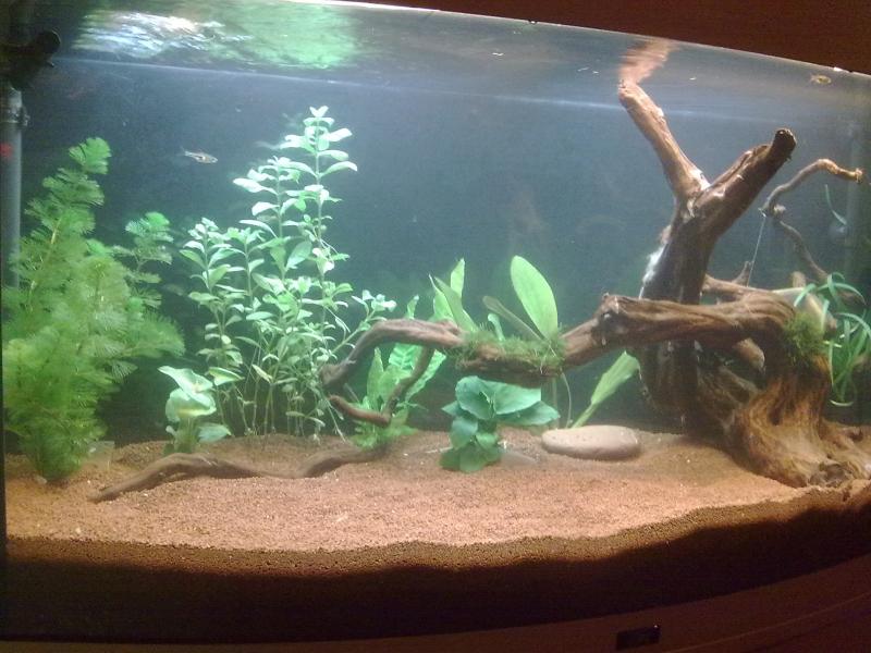 Πολύ ωραίο ενυδρείο! Ακόμα πιο όμορφο είναι το χαλικάκι και η ρίζα που έχεις, μπράβο. Αλλαγές νερού όμως συνηθίζεται 30% κάθε εβδομάδα.