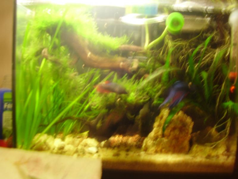 ειμαι μελος σε αυτο το φορουμ παραπανω απο 2 χρονια και αν δεις δεν εχω και πολλα ποστ, δεν πολυγραφω δλδ. γιατι δεν μου αρεσει να γραφω απλα για να γραψω κατι! ασχολουμαι με τα ενυδρεια περισσοτερα χρονια απο οσα ειμαι μελος και ακομα μαθενω! εγραψα κατι που παρατηρησα στο ενυδρειο και στα ψαρακια μου! επειδη δεν σου κολαει ανεβασα 2 φωτο με την φωλιτσα και τα ψαρακια μου να κολυμπανε παρεα, δυστηχως για το βιντεακι δεν τα καταφερα γιατι η ψυφιακη μου δεν... εγραψα σε αυτο το ποστ γιατι δεν εχω παρατηρησει επιθετικοτητα σε αυτο το ζευγαρι οπως θα επρεπε σε μονομαχους, δεν ειμαι κανας πιστιρικας να προσπαθω να αποδειξω κατι, ουτε προσπαθησα να πεισω καποιον οτι ετσι συμπεριφορονται ολοι οι μονομαχοι! και εκτος αυτου το ενυδρειακι το εχουν δει και απο κοντα 2 συμφορουμιτες και συνχομπιστες και το σηζηταγαμε! οπως και να εχει στην πρωτη φωτο ειναι το ζευγαρακι μου και στην δευτερη η φωλια που ξαναετοιμασε ο αρσενικος! |