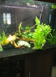 Πρώτη προσπάθεια σε φυτεμένο ενυδρείο λοιπόν για το snakehead μου , ελπίζω αν του αρέσει. Σύντομα θα βάλω στα αριστερά λίγες vallesnieres giganteas και stratiotes pistia επάνω ώστε να γίνει σκοτεινό. Θα ξεκινήσω από Δευτέρα και λίγο λίπασμα χωρίς CO2, τα φώτα σας παρακαλώ