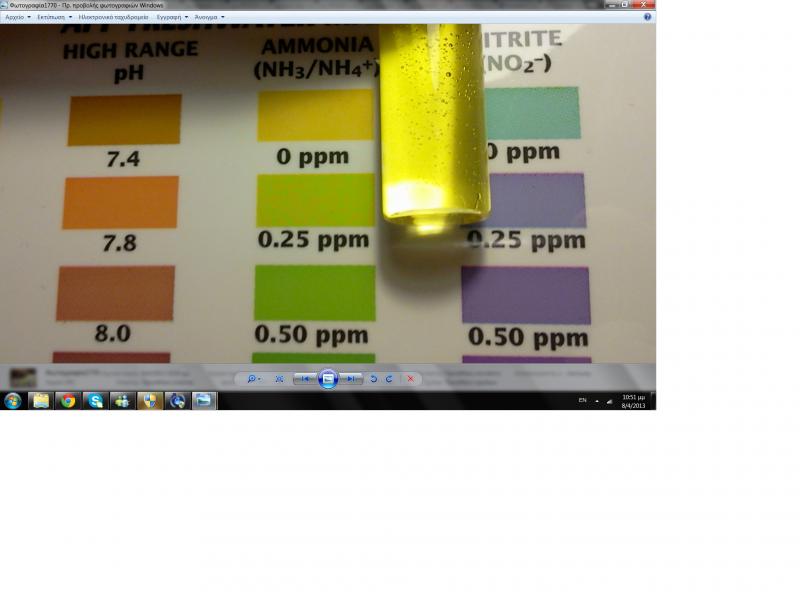 (στην τελευταια εχω βαλει το τεστ αμμωνιας γιατι ποτε δεν μπορω να καταλαβω αν ειναι 0 η 0,25. Οι υπολοιπες μετρησεις ειναι: νο2:0 νο3:10) ps1.τα φυτα τα φαγανε ps2.νομιζω το ψαρι ειναι σημερα καπως στρεσαρισμενο.. Αναμενω γνωμες ελπιζοντας να μην ειναι κατι που διαβασα... :/