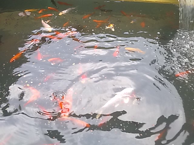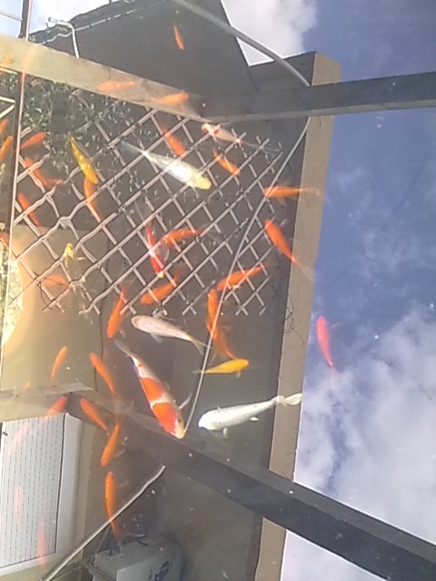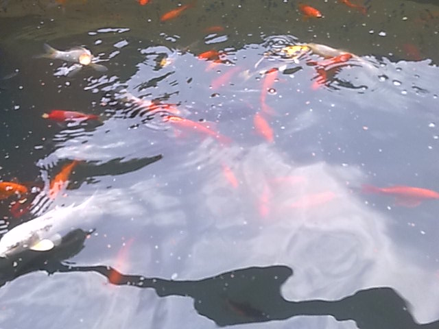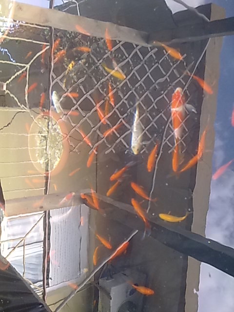 απο φυτα εβαλα μονο 6 μεγαλες γλαστρες νουφαρα και μια ποτεδερια αν τη λεω σωστα εχει περιπου 30 χρυσοψαρα και 6 κοι.
