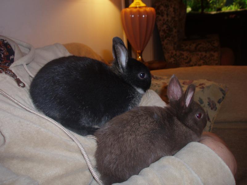 Το αποφασίσαμε, κι αφού ψάξαμε στο ιντερνετ πληροφορίες για τη συντήρηση τους, με άκρατο παλιμπαιδισμό παρουσιάζω τους/τες (ακομη δεν ξέρω φυλο) Λουκυ-Λουκ. Στο πετ μας είπαν ότι δεν είναι η ράτσα νάνου, αλλά μεσαία προς μικρά και θα μεγαλώσουν λίγο ακόμη. Απο ψάξιμο και φωτογραφίες στο διαδίκτυο, πιστεύω ότι είναι πάντως νάνοι, οι ολλανδικοί που δεν θα ξεπεράσουν το 1 κιλό. Τώρα είναι 2 μηνών, και όταν τα βγάζουμε έξω, μετά πρέπει να σκουπίζουμε όλο το σαλόνι απο τα κακάκια.....