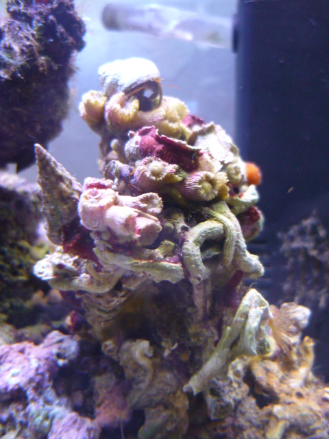 ειχα μια πολυ σοβαρη απωλεια (οπτικα) το σφουγγαρι το μωβ το εφαγαν οι ερημιτες και εβγαλα ολο το κομματακι του βραχου για να μη μου ανεβασει αμωνια.. και τα φυτα που ειχα δεξια εγιναν τροφη. Τα feather δεν βγαινουν παρα μονο οταν ταιζω και καποιες φορες μονο με το νυχτερινο ταισμα.. ισως εχω χασει καποια αλλα εχει πολλα και δεν ειναι αισθητη διαφορα.. οι ερημητες ζουν ολοι, και οι γαριδες μεγαλωσαν κ ολας!! Το μονο που με στεναχωρει λιγακι ειναι οτι οταν παω σε μεγαλυτερο σιγουρα δεν θα τις ξαναδω... Οι συνθηκες ηταν ασχημες ολο το καλοκαιρι και δεν εχει αλλαξει κατι απο τοτε.. ουτε καν το νερο... μονο συμπληρωνω με απιονισμενο και ταιζω πολυ λιγο, οσο τρωνε.. ενα φλεικ για το ψαρι το μεσημερι και οταν κλεισουν τα φωτα και παει για υπνο μια μπιλια γαριδοτροφη θρυματισμενη να φανε τα υπολοιπα!