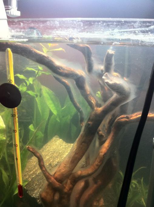 ναι . και εγω οταν εβαλα μια καινουρια ριζα στο ενυδρειο μου ετσι ητανε. το ξερω οτι ειναι πολυ αντιαισθθτικο αλλα θα φυγει μονη της,πιστεψε με.Απο το στομα σου και στης ριζας το αυτι