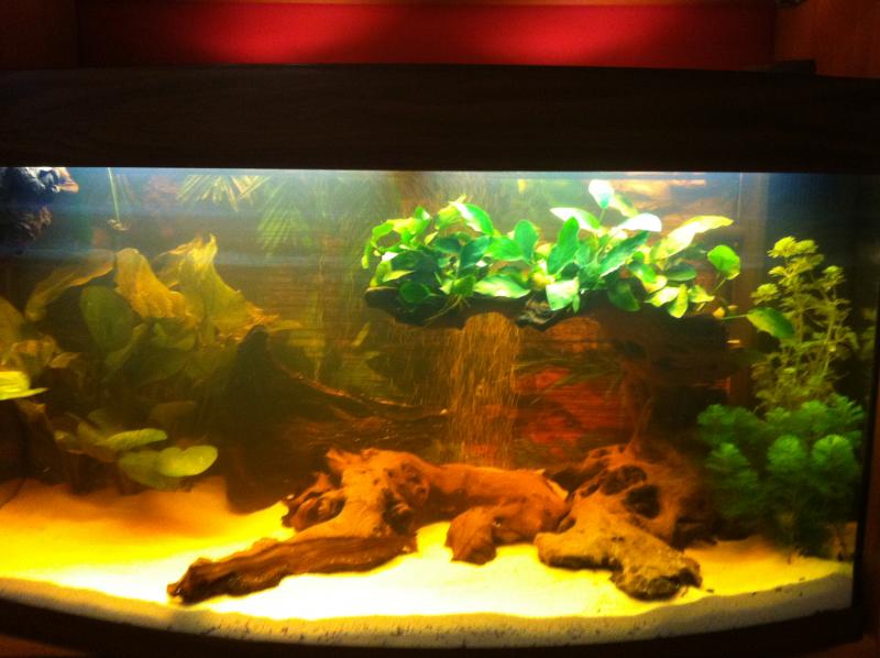 φοβερο το ενυδρειο σου, ειδικα το εφε με τη ριζα και της ανουμπιες ειναι ολα τα λεφτα. αφου σκοπευεις να βαλεις δισκους η γνωμη μου ειναι να βαλεις αρκετα επιπλεοντα φυτα για σκιερα μερη. ποσα λιτρα ειναι?