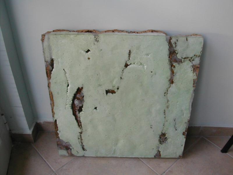 Αρχισα λοιπόν να ταιριάζω κομμάτι κομμάτι το φελλό ο οποίος στερεώθηκε πάνω στα δύο φύλλα τζάμιού χρησιμοποιώντας αφρό πολυουρεθάνης και ενυδρειακή σιλικόνη.