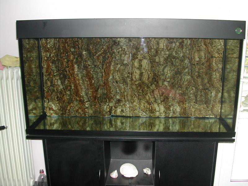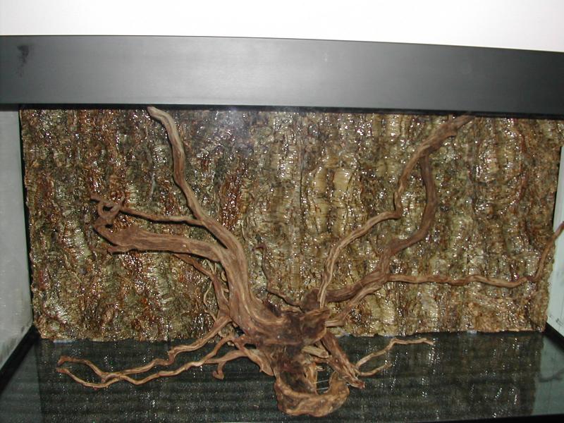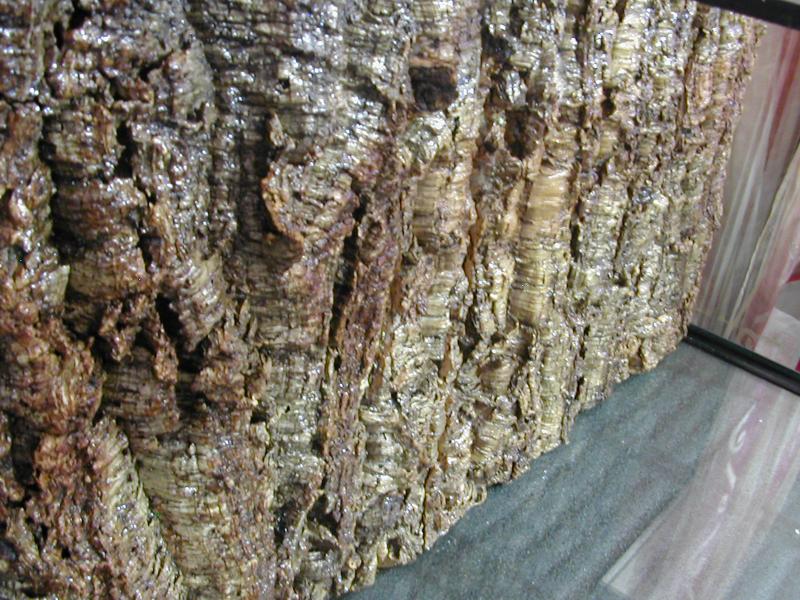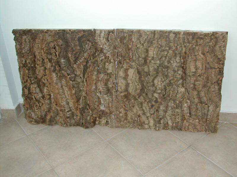 Αφου πειραματίστηκα με αρκετά υλικά (φελιζόλ, τσιμέντο, διάφορες πέτρες) το αποτέλεσμα είτε δε με κάλυπτε οπτικά, είτε δεν πληρούσε τα στάνταρ που είχα θέσει από την αρχή. Ετσι αποφάσισα να χρησιμοποιήσω ένα φυσικό υλικό που διαθέτει χαρακτηριστικά όπως ελαφρύ βάρος ελαστικότητα και αντοχή. Το υλικό αυτό είναι ο ακατέργαστος φελλός. Προχώρησα λοιπόν στην αγορά κομματιών για να καλύψω τις διαστάσεις της πλάτης του ενυδρείου μου 120 Χ 65. |