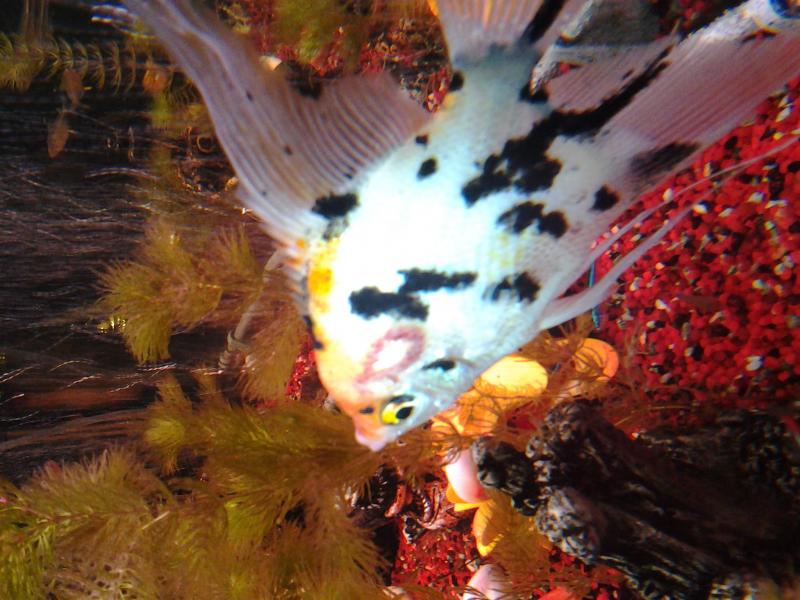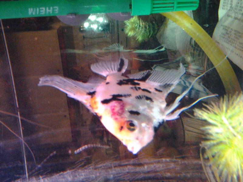 Σημερα που γυρισα απο την εξοδο μου και κοιταξα τα ψαρακια μου ειδα ενα περιεργο σημαδι στο κεφαλι του ψαριου πριν φυγω αυτο το πραγμα δεν το ειχε ...ουτε ειχε δειξει καποιο σημαδι για να γινει ετσι οπως εχει γινει κοιτακτε και τις φωτο...θελω βοηθηα τι να κανω στο ψαρι και πως να το γιατρεψω ειναι απο τα πιο αγαπημενα ψαρια μου και δεν θελω να το χασω ειναι κριμα..!!