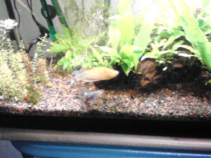 Διαστάσεις: 100 x 30 x 40cm Όγκος: 120 lt (105 καθαρά) Κατηγορία: Κοινωνικό Φυτά: java moss, java fern, rotala rotundifolia, Cryptocoryne brown(δεν είμαι σίγουρος) Ψάρια / ¶λλα είδη:4 golden gourami (Trichogaster trichopterus), 3 botia kubotai, 4 Glowlight Rasbora, 1 zebra snail, μερικές red cherry Διακοσμητικά υλικά:bog wood, 2 καρύδες, υπόστρωμα volcanit aqua medic. Φόντο: java moss carpet ( σε εξέλιξη) Φωτισμός:2x24 watt T5 μια για ψάρια και μια ροζ για φυτά. Διάρκεια φωτισμού: 8 ώρες Φιλτράρισμα: εξωτερικό φίλτρο eheim 2213 Θερμοστάτης: 150 watt Λίπανση: seachem flourish ή seachem trace ανάλογη ποσότητα σε κάθε αλλαγή νερού. Παροχή CO2: GlorinAxis υγρό CO2 4 σταφόνες κάθε μέρα Παράμετροι: pH:7,8 Γενική σκληρότητα (GH):14 Ανθρακική σκληρότητα (ΚΗ):11 Αμμωνία (ΝΗ3):0 Νιτρώδη (ΝΟ2):0 Νιτρικά (ΝΟ3):- (μου τελείωσε το τεστ...) Αλλαγές νερού:30 λίτρα μια φορά την βδομάδα Θερμοκρασία:28 (τώρα το καλοκαίρι) ¶λλες πληροφορίες: πρόσφατα (με μεγάλη περιφάνεια) εγκατέστησα τον STC - 1000 controller με 4 ανεμιστηράκια και μου έφυγε το άγχος της ανόδου της θερμοκρασίας. Φωτογραφία: |