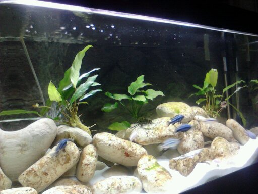 Όγκος:270 lt Κατηγορία:Malawi Φυτά:3 ανουμπιες Ψάρια / ¶λλα είδη:- Διακοσμητικά υλικά:τις 3 ανουμπιες και τις πετρες απο μια παραλια τις εβαλα αφου τις εβρασα για 15 λεπτα Φόντο:χαρτονη που απεικονιζονται πετρες Φωτισμός:2 T5 39W Διάρκεια φωτισμού:8 ωρες Φιλτράρισμα:ELITE Crystal-Flo Model 80 Θερμοστάτης:scuba heater 300 Αεραντλία:sera air 275 r plus Παράμετροι: pH:9 Γενική σκληρότητα (GH): Ανθρακική σκληρότητα (ΚΗ): Αμμωνία (ΝΗ3):0 Νιτρώδη (ΝΟ2):0 Νιτρικά (ΝΟ3): Αλλαγές νερού:καθε 2 εβδομαδες το 1/3 και καθε μια εβδομαδα κανω καθαρισμο με σκουπα βυθου Θερμοκρασία:26,5 c