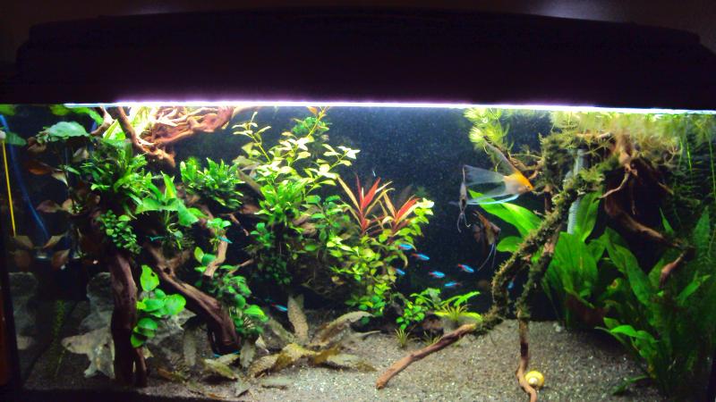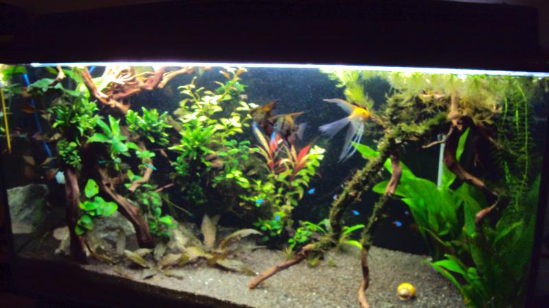 ΠληροφορίεςΔιαστάσεις: 100 x 40 x 55 Όγκος: 200 λίτρα Κατηγορία: Φυτεμένο κοινωνικό Φυτά:cryptocoryne ciliata,cryptocoryne willisii,vallisneria nana sp.,eleocharis accicularis sp.,blyxa sp,bacopa monnieri,ludwigia repens,anubia nana-pettiet-gigantea,engeria densa,microsorum pteropus narrow,java moss,ceratofillum Ψάρια / ¶λλα είδη: 12 neon tettra,10 corydoras catfish paper 2 corydoras almbino,2 agistrus,2 peru scalar(pair),1 gold vaintail scalar,2 aple snail,10 blue ramshon snail. Διακοσμητικά υλικά:redmoor wood,φυσικα ποταμισια βοτσαλα,driftwood Φόντο: Mαυρο χαρτόνι Φωτισμός: 2 x 39 watt sylvania grolux Τ5, 2 x 39 watt sylvania tropical sun Τ5,1 x day light T5 Διάρκεια φωτισμού: Οι 2 Τ5 λάμπες(tropical sun) 15:00-23:00,οι 2 (gro lux) 17:00-21:00,η 1 daylight 16:30-21:30 Φιλτράρισμα:Φίλτρο dolfin 1600 με σπογγους,4 λίτρα absorbex micro - hobby,2 λίτρα micromec - jbl,1 λίτρο substratPRO - eheim,0.5 λίτρα easy-life simbiont,ενυδρειακο βαμβακι,αντλια newjet 1200 lt/h Θερμοστάτης: 200 wattjager Λίπανση: Όλα της Seachem Kαθημερινό πρόγραμα Παροχή CO2: 2 kg φιάλη με κεραμικό διαχυτηρα στην είσοδο της αντλίας Παράμετροι: pH: 6,2 Γενική σκληρότητα (GH): 6 Ανθρακική σκληρότητα (ΚΗ): 4 Αμμωνία (ΝΗ3): 0 Νιτρώδη (ΝΟ2): 0 Νιτρικά (ΝΟ3): 15 Αλλαγές νερού: 30-40% εβδομαδιαίως Θερμοκρασία: 26.5 c - 27 c Φωτογραφίες: ![]() ![]() ![]() ![]() ![]() ![]() ![]() ![]() ![]() Τις προτάσεις σας!!!Τα σκαλάρια θα βγούνε απ το ενυδρείο...θα μπει ζευγαρι ramirezi και κανα 10αρια ακόμα neon... |