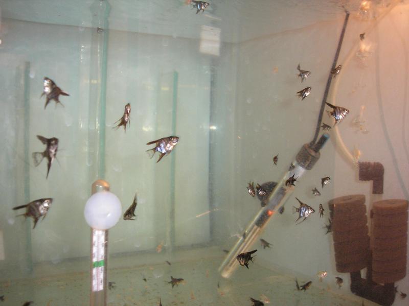 καλησπερα σε ολους. εδω και καιρο εχω ενα ζευγαρι αγγελοψαρα στο κοινοβιο με τους δισκους που εχω το οποιο γενουσε και δηστυχως τα ετρωγαν οι υπολοιποι κατοικοι του ενυδρειου. τα εβαλα λοιπον σε μια γενηστρα και την πρωτη κιολας εβδομαδα γεννησαν. οι συνθηκες του νερου ειναι ph 7.2 kh 4-5 αλλες μετρησεις δεν κανω γιατι οι αλλαγες μου ειναι 50% καθε τρεις μερες. τα αγγελοψαρα δεν εφευγαν ουτε στιγμη απο τον κωνο και οταν εσκασαν τα αυγα και αρχισαν να κολυμπανε ετρεχαν και τα μαζευαν αμεσως. εβαλα αρτεμια να γινετε (sera) αλλα δεν εσκασε παρολο που εγιναν ολα οπως επρεπε. ενας φιλος μου ειπε να τους δωσω τροφη πουδρα πραγμα το οποιο εκανα και πηγαν ολα μια χαρα. απολαυστε τα.