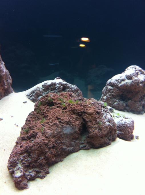 γνωριζει κανεις τι ειναι αυτο πανω στην πετρα?Το ενυδρειο τρεχει 2 εβδομαδες ειναι ακομα στο στρωσιμο και εχει μεσα μονο χαλαζιακη αμμο και πετρες λαβα..