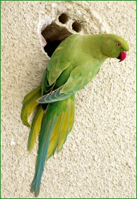 http://en.wikipedia.org/wiki/Rose-ringed_Parakeet