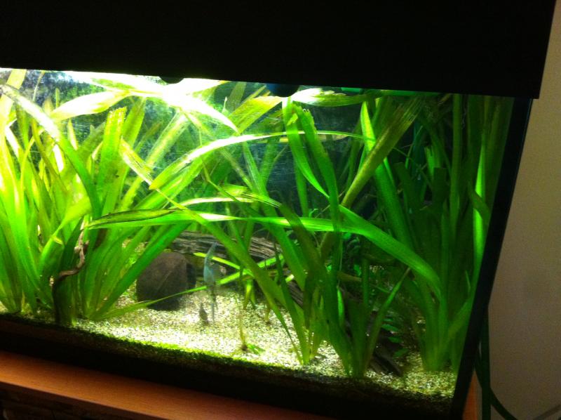 Προηγουμένως φιλοξενούσε 4 σκαλαράκια , αλλά τα 3 πεθάναν , καθώς κάποιος (καθαρίστρια, φιλος?) κούνησε την ταίστρα και έριξε όλη την τροφή μέσα. Δεν το πήρα χαμπάρι εγκαίρως.ισως να εκανε μια αποτομη αυξηση αμμωνιας και να τα εστειλε,αλλα αμφιβαλω οτι ηταν μονο αυτο προβλημα.κυριως λογω της ψαροσυνθεσης σου και των παραμετρων του νερου σου.