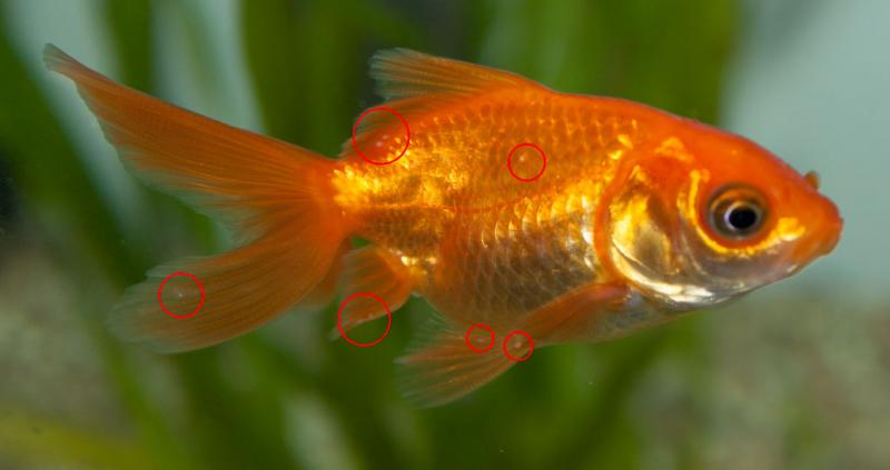 Δεν είμαι σπίτι τώρα, αλλά θα βγάλω και άλλες φωτό το απόγευμα που θα γυρίσω. Πρόσεξα ότι τα στίγματα είναι ελαφρως χνουδωτά και φαίνονται κυρίως με το φώς του ενυδρείο. Με το φως του δωματίου (όπως και με το φλας της μηχανής) τα περισσότερα δεν είναι ορατά. Δεν ξέρω αν έχει να κάνει με το είδος του φωτισμού ή με την κατεύθυνση (το φως του ενυδρείου είναι από πανω και φωτίζει ουσιαστικά παράλληλα με το σωμα του ψαριου ενώ του δωματίου από μπροστά).