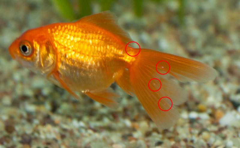 Τελικά χθές ξεκίνησα με αλάτι 0,2%. Σήμερα δείχνει καλύτερα σαν συμπεριφορά αλλά πλέον έχουν εμφανιστεί κόκκινες γραμμές στην ουρά και μία πληγή στο πλάι κοντά στα βράγχια.