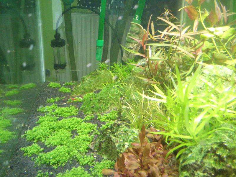 Ναι ακόμα με το φωτιστικό λεντ ειμαι καθ δεν θα αλλάξω.. Σε κάποια ποστ σου είχα δει ότι μίλαγες για ταινία λεντ. Μην μπεις καν στον κόπο να ψαχτεις γι'αυτό.. Για το σεταπ σου κοίτα για τριβατα και πάνω.. Θέμα δυσκολίας δεν είχα με κανένα φυτό και όλα μου βγάζουν τα κόκκινα μοβ χρώματα τούς.. Θα ανεβάσω plant list γτ δεν τα θυμάμαι όλα.. Αν θες κανονίζουμε ενα πείραμα με κάποια είδη που θες να μετρήσω ρυθμούς ανάπτυξης χρώματα κ τέτοια.. Θεμα θερμοκρασίας δεν είχα ποτέ.. Τώρα ψυχω όλο το ενυδρείο με έναν ανεμηστηρα συνδεδεμένο στον controller μου που αυξομειωνει τις στροφές ανάλογα με τις ανάγκεες Ψύξης.. Με τις αλλαγές που κάνω τώρα με τον controller στο φωτιστικό θα είναι αθόρυβο τελείως.. ¶ντε να ακούγεται λιγο το μεσημέρι που τς λεντ θα είναι κοντά στο 100%.. ------------------------- :hemianthus callitrichoides, pogostemon helferi, blyxa japonica, ludwigia repens, myriophyllum matogrossense red, polygonum sp. 'sao paulo', heteranthera zosterifolia, ludwigia arquata, proserpinaca palustris Και λίγο μοςς που είχε βγει μόνη της από μια πέτρα που είχα στο προηγούμενο setup.. Η πέτρα ήταν μαζεμένη από το χωριό και δεν είχε τπτ πάνω και ξαφνικά μια μέρα, παρατηρήσα μια τουφιτσα μοςς πάνω της..