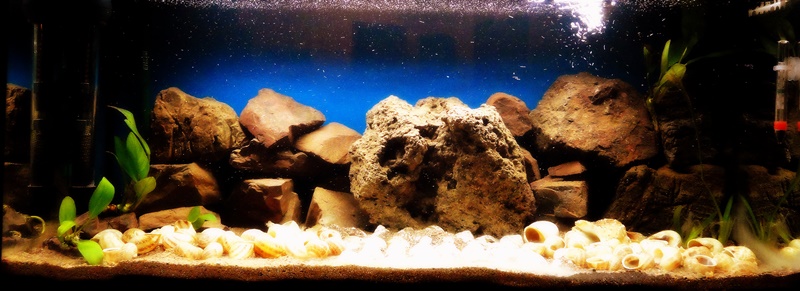 Ανεβάζω ένα update του ενυδρείου μου, αφού πρόσθεσα μερικές ανούμπιες κ βαλισνέριες κ άλλαξα λίγο το aquascape με τις πέτρες και τα κοχύλια. Θα ήθελα τη γνώμη σας εάν το έχω "παρακάνει" με τις πέτρες, μήπως είναι too much; Όσον αφορά τα σιμιλάκια πάνε πολύ καλά όλα τους, φίλε Κλεόβουλε Το μεγαλύτερο από αυτά σκάβει γύρω από τα κοχύλια ασταμάτητα εδώ κ μέρες. Ερώτηση προς τους γνώστες: Τι σημαίνει αυτό, είναι συνηθισμένη συμπεριφορά από ένα μόνο από αυτά να σκάβει ή ετοιμαζόμαστε για κάτι άλλο; Εντωμεταξύ 4 βρίσκονται στο αριστερό τμημα με τα κοχύλια κ άλλα 2 (τα μεγαλύτερα) είναι μόνα τους στο δεξί τμήμα