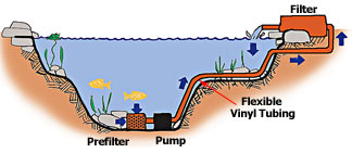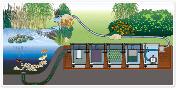 βαρέλι/βαρέλια και μετά το οδηγείς (με την βαρύτητα στην λίμνη) Τα υλικά πρέπει να "στρώσουν" όπως στο ενυδρείο για να λειτουργήσουν σωστά. Στην αρχή θα πρέπει να έχεις κάτι να κρατάει την βρωμιά, πχ σφουγγάρια (με μεγάλους πόρους γιατί μπουκώνουν), δίχτυα ή κάτι άλλο και στην συνέχεια ελαφρόπετρα. Επισυνάπτω μια φωτό που βρήκα στο ίντερνετ για να καταλάβεις την λογική. |