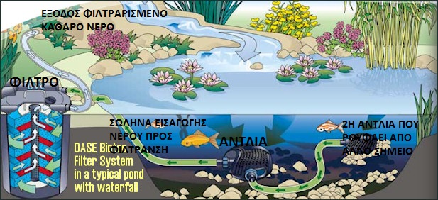 Τα φίλτρα μπορεί να είναι είτε θαμμένα είτε πάνω από την επιφάνεια της λίμνης. Εξαρτάτε ποια διάταξη θες να διαλέξεις. Στην 1η φώτο της Artemisias πρέπει να είναι θαμμένα και στο τέλος να είναι η αντλία. Στην 2η και 3η φώτο της Artemisias μπορούν να είναι πάνω από το επίπεδο του νερού και η αντλία στην αρχή. Και στις 2 περιπτώσεις στο τέλος μπορείς να έχεις καταρράκτη.