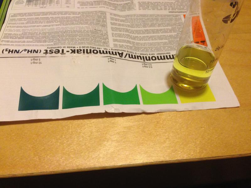 Πριν ξοδέψεις χρήματα σε αγορά άλλων τεστ επιβεβαίωσε ότι μετράς σωστά με αυτό που ήδη έχεις. Πάρε λίγη φαρμακευτική αμμωνία από το φαρμακείο (την πιο μικρή ποσότητα που πουλάνε), είναι φτηνή. Γέμισε έναν κουβά ή μια λεκάνη με νερό βρύσης και ρίξε μια σταγονίτσα (όχι παραπάνω) αμμωνίας. Έπειτα μέτρησε το νερό με το τεστ που έχεις. Μετράς κάποια (αρκετή θα είναι) συγκέντρωση αμμωνίας; Αν ναι, μάλλον μπορείς να βασιστείς σε αυτό και δεν χρειάζεσαι άλλο τεστ αμμωνίας. Αρκεί να μετράς συχνά το νερό του ενυδρείου για να ξέρεις τι γίνεται. Χρειάζεσαι, βέβαια, οπωσδήποτε τεστ για νιτρώδη (ΝΟ2) καθώς και, αν μπορείς, τεστ για νιτρικά (ΝΟ3). Για το μέγεθος του ενυδρείου τα ξέρεις ήδη, δεν χρειάζεται να σου επαναλάβω ότι είναι υπερβολικά μικρό (όπως και το φίλτρο). Και πάλι καλή τύχη στο ψαράκι σου... |
