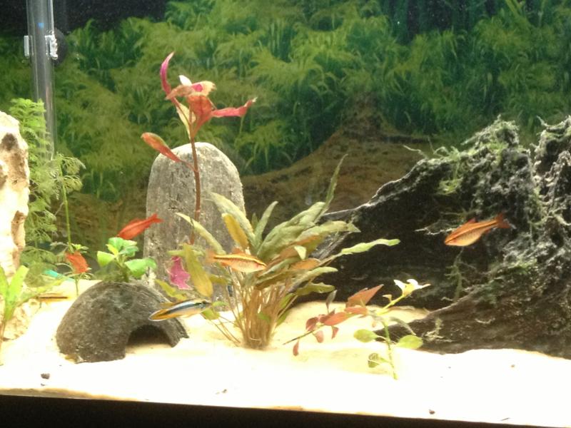Καλη αρχη σου ευχομαι!Ωραιο το ενυδρειο σου απλα θες αρκετη φυτομαζα ακομη και θα γινει ποιο ομορφο!Ισως αν κατεβαζες και το ph σου λιγο θα ηταν ακομη καλυτερα καθως να εκανες λιγο μεγαλυτερο κοπαδακι και τα cory!Επισης ειναι αρκετες οι 9 ωρες φωτισμου!