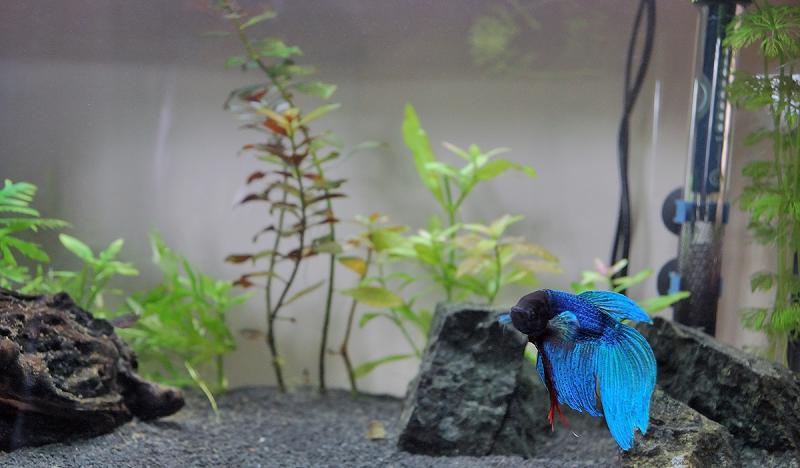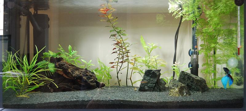 Αρχικά είχα τον μονομάχο σε γυάλα και αποφάσισα να πάρω ενυδρείο, πήγαινα για ένα 30-40 λίτρων και τελικά πήρα αυτό.