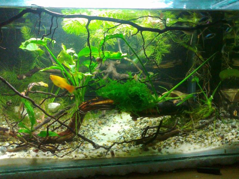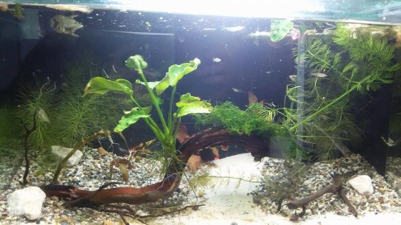 Διαστάσεις:75x30x35 Όγκος:63L Κατηγορία:Κοινωνικό - Φυτεμένο Φυτά:cryptocoryne, vallisneria , hygrophila , Bacopa caroliniana, java moss, , vallisneria, bacopa monnieri ,ceratophyllum,anubia nana Ψάρια / ¶λλα είδη: 4 edler μικρά ,6 πλατυ , 20 red cherry , μερικά physa snails , αρκετα trumpet snails, πολλά ramshorn snails blue , και 2 hellena Διακοσμητικά υλικά: χαλίκι, ρίζες , άμμος. πέτρες Φόντο: μαύρο χαρτόνι Φωτισμός: 24 watt (προσωρινά μέχρι να γίνει το καπάκι) Διάρκεια φωτισμού: 9 ώρες Φιλτράρισμα: 1 φίλτρο εσωτερικό των 450 λτ/ώρα Θερμοστάτης: 100w Λίπανση:- Παροχή CO2: diy C02 Παράμετροι pH: 7,5 Γενική σκληρότητα (GH): 8 Ανθρακική σκληρότητα (ΚΗ): 5 Αμμωνία (ΝΗ3): 0 Νιτρώδη (ΝΟ2): 0 Νιτρικά (ΝΟ3): 10 Αλλαγές νερού: μία φορά τη βδομάδα 40% οι φωτογραφίες είναι απο την αρχη του στισίματος θα μπουν και νέες σύντομα!