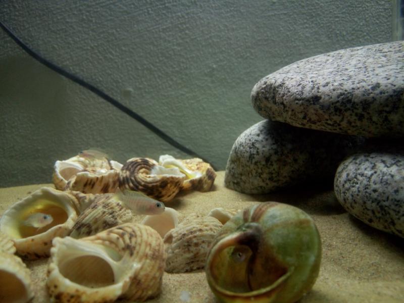 Θα χρειαστείς κι άλλα κελύφη. Βλέπω ψαράκια με δυσμορφία και στο στόμα (από μαγαζί είναι?). Για τροφή (της ίδιας εταιρείας) προτίμησε την Tropical Tanganyika. |