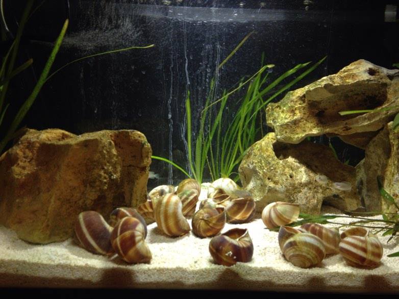 Διακοσμητικά υλικά:Αραγωνίτης 9 κιλά,Αβεστοληθικές πέτρες,Κοχύλια βρώσιμων σαλιγκαριών