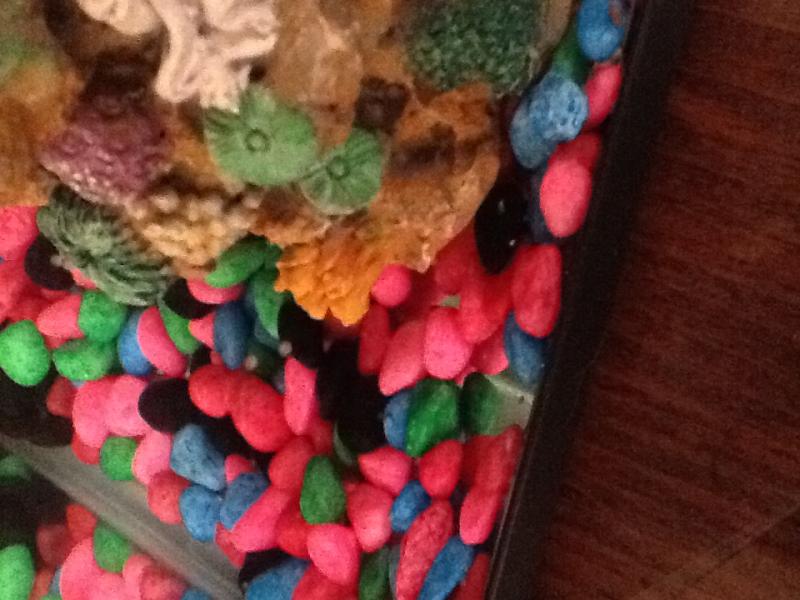 Αλλη μία παρατήρηση, επειδή το ψάρι αυτή τη στιγμή έχει ανάγκη και το ένα ποτήρι νερό, βγάλε ότι διακοσμητικό έχεις, ειδικά αν είναι ψεύτικο, δεν προσφέρει κάτι, χώρο πιάνει, και να αποφεύγεις οτιδήποτε ψεύτικο και τεχνητό, όπως και τα βαμμένα χαλίκια, μόνο κακό κάνουν.