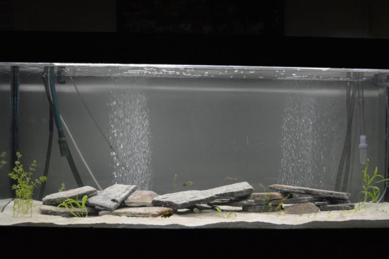 Από εξοπλισμό σε βρίσκω μια χαρά. Το στήσιμο αυτής της πέτρας δεν μ' αρέσει. Αν δεν θέλεις πολλές πέτρες, και για να μη φαίνεται το ενυδρείο άδειο, θα μπορούσες να βάλεις 1-2 ογκώδεις σε μια μεριά μαζί με λίγες μικρότερες. Έτσι θα εδραιώσει και περιοχή ο κυρίαρχος αρσενικός (διαφορετικά, όταν μεγαλώσουν τα ψάρια, θα θεωρήσει περιοχή του όλο το ενυδρείο και θα ταλαιπωρεί τα υπόλοιπα) και θα έχεις κρυψώνες για τα μικρά ή αδύναμα. |