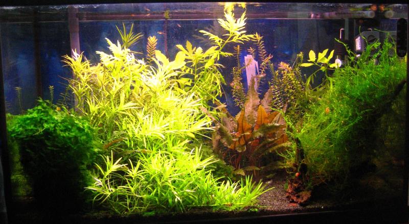 Διαστάσεις: 60*30*35 Όγκος: 63 l Κατηγορία: Ζωοτόκα Φυτά: Cryptocorine Wendtii Βrown, Heteranthera zosterifolia, Rotala Rotundifolia, Pellia moss, Java moss και Hygrophila difformis Ψάρια / ¶λλα είδη: poecilia wingei Class P (Endlers), red cherry shrimp και ramshorn snail Διακοσμητικά υλικά: μαύρο χαλίκι χαλαζιακό και 3 ξύλα driftwood Φόντο : μπλε χαρτόνι Φωτισμός: 1 λάμπα t8 15w osram fluora και 1 μπάρα led ψυχρό (800 lumen) Διάρκεια φωτισμού: 9 ώρες Φιλτράρισμα: SUNSUN HW603B Θερμοστάτης: 50w Ιχνοστοιχεία : TROPICAL Carbo, Easy Life ProFito, Seachem Flourish Potassium, Seachem Flourish Trace Παροχή CO2: Όχι Παράμετροι: pH: 6.8 Γενική σκληρότητα (GH): Ανθρακική σκληρότητα (ΚΗ): Αμμωνία (ΝΗ3):0 Νιτρώδη (ΝΟ2):0 Νιτρικά (ΝΟ3):5 Αλλαγές νερού: 25 λίτρα κάθε Κυριακή Θερμοκρασία:26 Καλημέρα, αφού παρουσίασα πριν λίγο καιρό το δεύτερο ενυδρείο μου με το τελευταίο του στήσιμο σειρά έχει το πρώτο ενυδρείο που ξεκίνησα το χόμπυ. Τρέχει 2+ χρόνια με αυτό το στήσιμο απλά έχουν αλλάξει κατά διαστήματα κάποια από τα φυτά. Όλες οι παρατηρήσεις δεκτές. Φώτο |