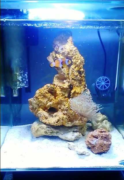 Ξεκίνησα με 2 βραχάκια και ένα κλόουν, προχώρησα αργότερα και σε ένα κορολλάκι (δεν θυμάμαι το όνομα αλλά το έχω φωτογραφεία) και σε ένα δεύτερο κλόουν και μερικά σαλιγκαράκια να καθαρίζουν την άλγη,
